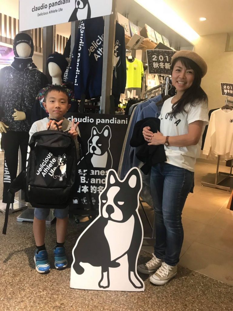 お子さんのリュックと、お母さんはサッカーナッツのニットキャップ購入いただきました。